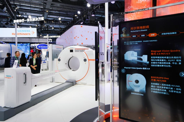 7 ноября 2025 года, на этой фотографии запечатлен стенд компании Siemens на выставке медицинского оборудования и товаров для здравоохранения во время 8-го Китайского международного импортного ЭКСПО /CIIE/ в восточно-китайском городе Шанхай. /Фото: Синьхуа/