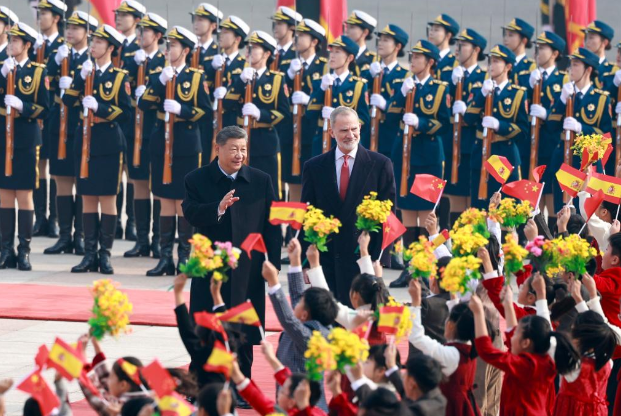 Король Филипп VI со своей стороны заявил, что очень рад посетить Китай с государственным визитом в год 20-летия испано-китайских отношений всеобъемлющего стратегического партнерства, добавив, что Испания и Китай поддерживают давние дружественные обмены. С момента установления дипотношений две страны неизменно проявляют доверие и уважение друг к другу, прилагая усилия для совместного развития и процветания, отметил он.