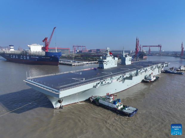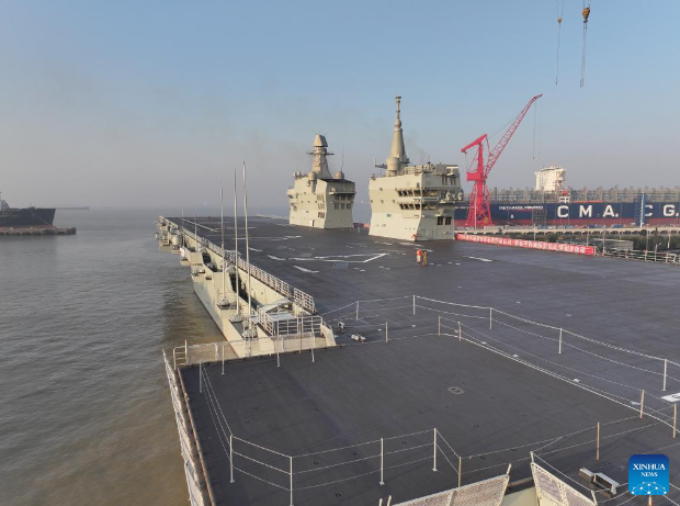 Первый универсальный десантный корабль /УДК/ типа 076 Военно-морских сил /ВМС/ Народно-освободительной армии Китая /НОАК/ "Сычуань" в пятницу утром отправился из Шанхая /Восточный Китай/ в море на первые ходовые испытания.