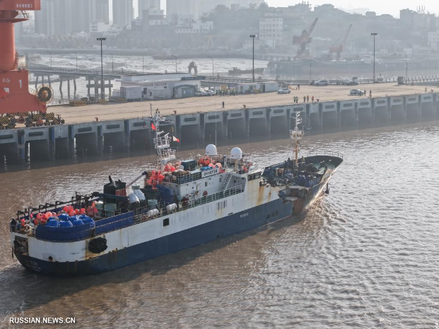 Ханчжоу, 11 января /Синьхуа/ -- В пятницу российское грузовое судно "Охотск" пришвартовалось к причалу в порту Дамайюй, доставив 92,5 тонны живых королевских крабов в город Тайчжоу /провинция Чжэцзян, Восточный Китай/. В пункте пограничного контроля порта сообщили, что "Охотск" стал первым в 2026 году иностранным судном, которое прибыло в г. Тайчжоу, с живыми королевскими крабами на борту.