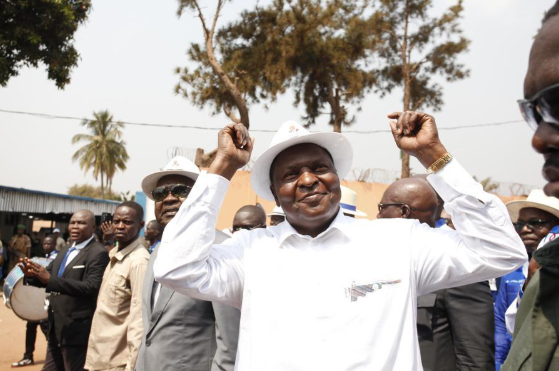 19 января, Банги. Действующий президент ЦАР Фостен-Арканж Туадера приветствует публику после объявления окончательных результатов президентских выборов. /Фото: Синьхуа/
