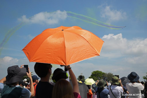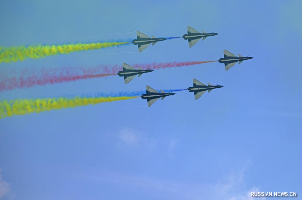 Выступление пилотажной группы ВВС НОАК в Сингапуре
