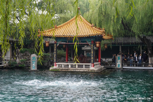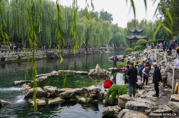 Цзинань, 16 октября /Синьхуа/ -- Благодаря недавно прошедшим дождям из серии источников в городе Цзинань /пров. Шаньдун, Восточный Китай/ забила ключом вода, что привлекло большое количество туристов.