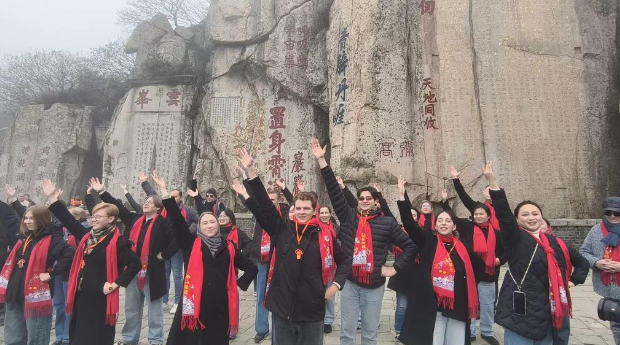 Кроме того, артисты хора поднялись на вершину горы Тайшань и насладились величественными пейзажами горы, получив более глубокое представление о долгой истории и культуре этой горы.