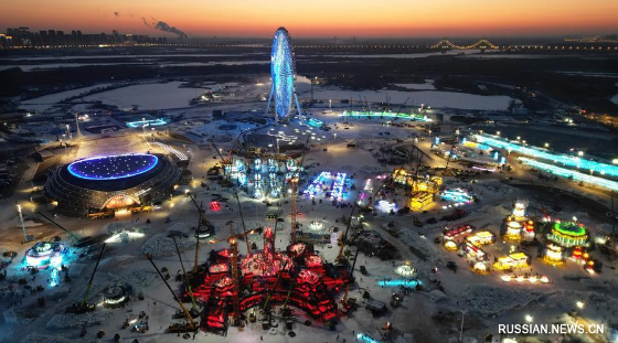 4 декабря 2025 года, строительная площадка тематического парка "Большой мир льда и снега" в Харбине /пров. Хэйлунцзян, Северо-Восточный Китай/. /Фото: Синьхуа/