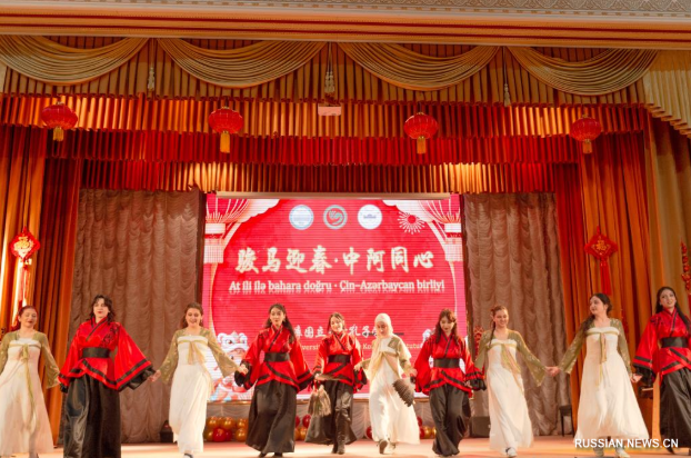 4 февраля, Баку. Танцевальный номер студентов на концерте по случаю приближающегося праздника Весны в Бакинском государственном университете. /Фото: Синьхуа/