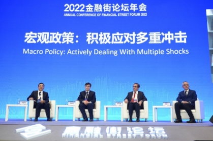This photo taken on Nov. 21, 2022 shows the scene of a session themed "Macro Policy: Actively Dealing With Multiple Shocks" during the Annual Conference of Financial Street Forum 2022 in Beijing, capital of China. (Xinhua/Cai Yang)