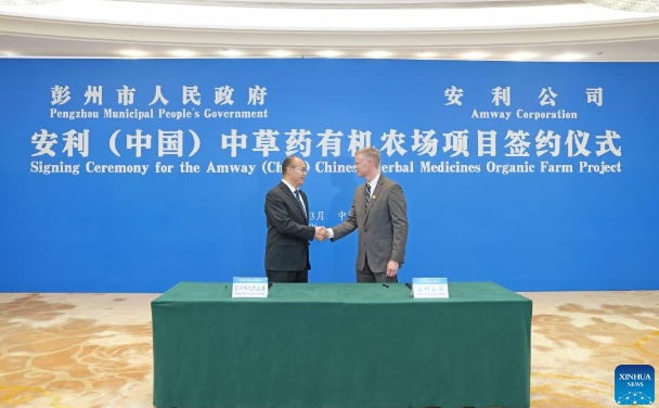 The signing ceremony of Amway (China) Chinese Herbal Medicines Organic Farm was held on Thursday in Chengdu, capital of southwest China's Sichuan Province, marking the launch of its first self-owned organic farm outside the Americas.