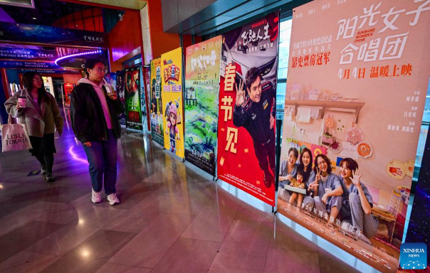 Moviegoers walk past the poster for Taiwan's film "Sunshine Women's Choir" at a cinema in downtown Beijing, capital of China, on March 31, 2026.(Xinhua/Chen Yehua)