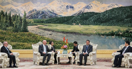 Senior Chinese official He Lifeng met with David Solomon, chairman and CEO of Goldman Sachs Group, in Beijing on Tuesday.