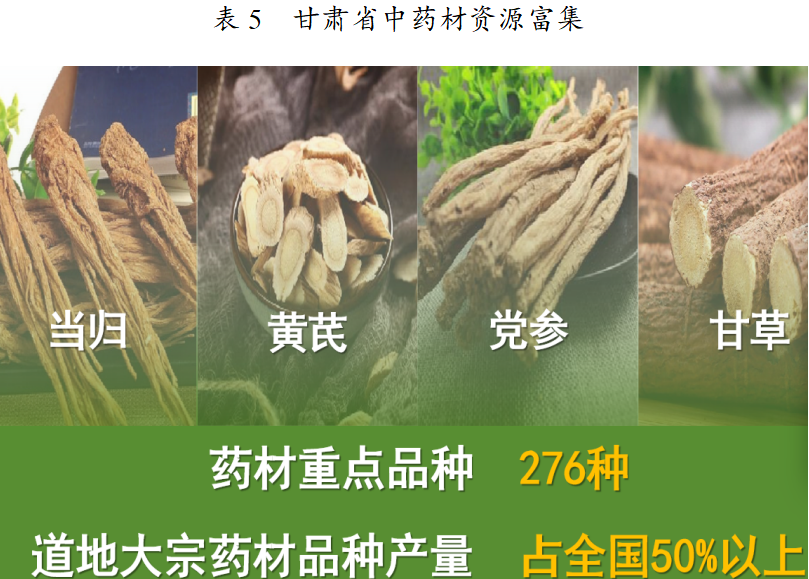 表5 甘肃省中药材资源富集