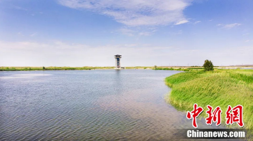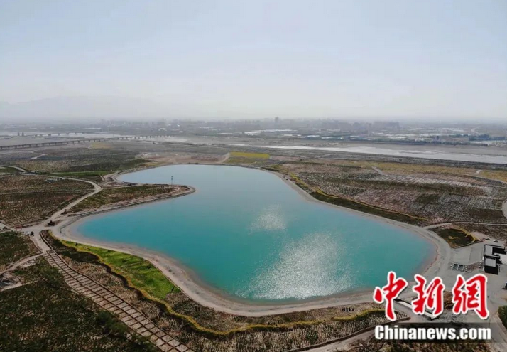 地处巴丹吉林沙漠和蒙新戈壁前沿的甘肃省嘉峪关草湖国家湿地公园。中新社记者 高展 摄
