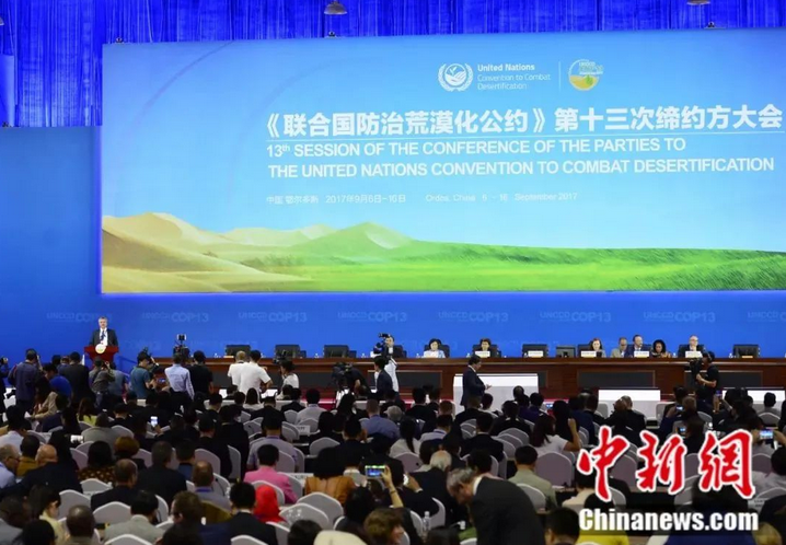 2017年,《联合国防治荒漠化公约》第十三次缔约方大会在中国内蒙古自治区鄂尔多斯市举行。中新社记者 刘文华 摄