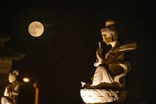 敦煌,一轮超级圆月悬挂夜空