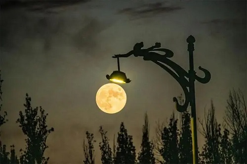 飞天路灯与圆月