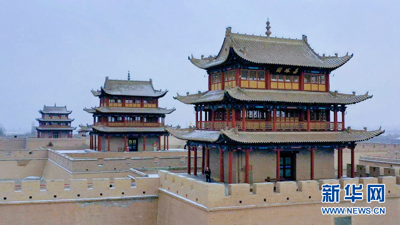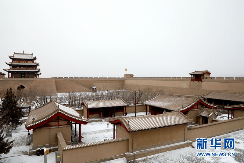 这是2月17日在嘉峪关关城内拍摄的游击将军府雪景。新华网发(刘欣瑜 摄)