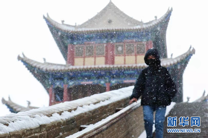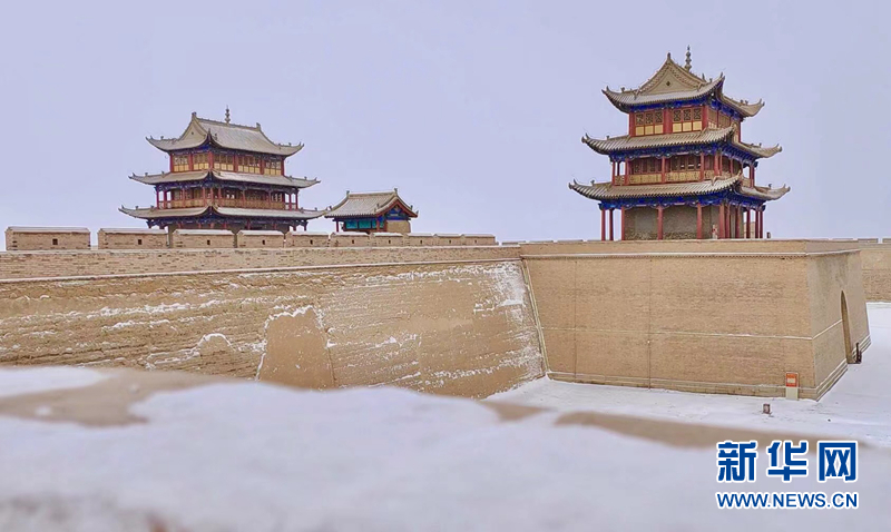 近日,甘肃省嘉峪关市迎来降雪天气。雪后的嘉峪关关城银装素裹,景色壮美。嘉峪关关城始建于明洪武五年(1372年),是明代长城西端重要关隘,被誉为“天下第一雄关”。