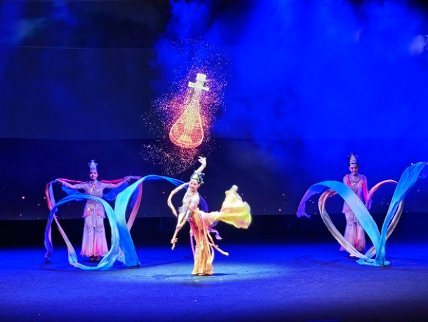 演出在欢快热烈的氛围中拉开帷幕,甘肃省歌舞剧院的艺术家们倾情演绎了以丝绸之路文化为主题的经典舞蹈节目,飘逸的“飞天”舞姿、绚丽的敦煌色彩和动人的丝路风情,深深打动了在场观众。本次演出也是中国传统艺术形式的集中展示:神秘莫测的川剧《变脸》,瞬息万变,引人称奇;高亢嘹亮的唢呐独奏《百鸟朝凤》,描绘出一幅生机盎然的自然画卷;杂技《坛韵》与《鞭响运来》则分别以惊险奇巧的顶坛技艺和清脆响亮的鞭技,展示了力与美的完美结合,寓意对吉祥好运与美好生活的热切向往;舞蹈《丝路民族风》则以欢快的节奏和热情的舞步,展现了丝路沿线各族人民团结友爱、共庆佳节的生动场景。