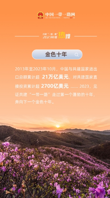 确定2023年是共建“一带一路”倡议提出十周年。年终岁末,中国一带一路网基于平台数据进行了年度盘点。让我们通过一组热搜,一起回望共建“一带一路”的热力、活力与魅力——