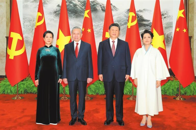 苏林表示,这是我当选越南国家主席后首次出访,也正值习近平总书记、国家主席去年对越进行历史性访问一周年,充分反映了总书记同志所说的“邻里越走越亲”。越方感谢中国共产党、政府和人民对越共十四大提供的重要政治支持,愿始终同中方赓续传统友谊,推动两国全面战略合作伙伴关系和具有战略意义的命运共同体不断发展。越方祝贺中国胜利完成“十四五”规划并取得历史性成就,相信中方将顺利实施“十五五”规划,不断推进高质量发展和社会主义现代化建设,如期实现第二个百年奋斗目标,并成为世界和平发展的支柱力量和首要动力。