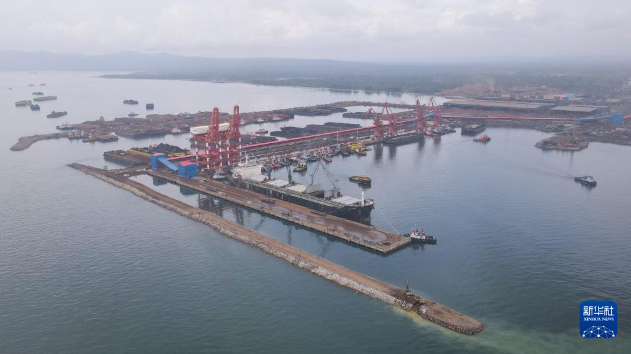 这是5月18日在印度尼西亚东南苏拉维西省拍摄的德龙专用肯达里散货码头(无人机照片)。 新华社记者 徐钦 摄