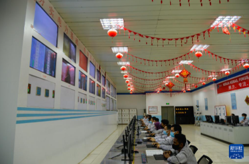 5月18日,在印度尼西亚东南苏拉维西省德龙工业园肯达里基地,员工在发电厂中控室工作。 新华社记者 徐钦 摄