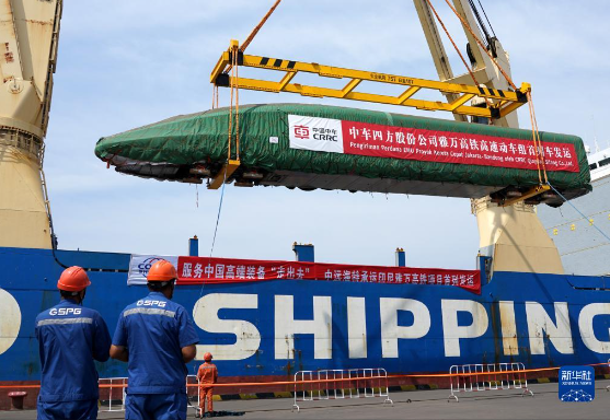 雅万高铁高速动车组在山东港口青岛港装船(8月18日摄)。新华社发(姜超 摄)