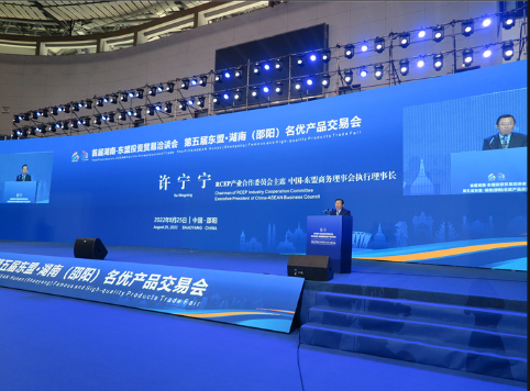8月25日,由中国—东盟商务理事会、湖南省商务厅、邵阳市人民政府共同主办的首届湖南—东盟投资贸易洽谈会、第五届东盟·湖南(邵阳)名优产品交易会、RCEP经贸合作论坛在邵阳市举行。中国—东盟商务理事会执行理事长、RCEP产业合作委员会主席许宁宁在会上强调,中国—东盟以增进经贸合作来共同应对挑战。