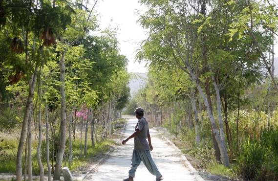 在当地语言里,“瓜达尔”意为“风之门”。这里气候干燥炎热,地表植被少,土壤盐渍化、沙漠化严重。中国港控绿化负责人王瑞磊介绍说,这片友谊林以前是垃圾场。中方团队到瓜达尔后,根据当地气候特点,选取具有防风固沙功能的树种种植在友谊林中。截至目前,已累计种植适合热带干旱地区的植物4000余株。