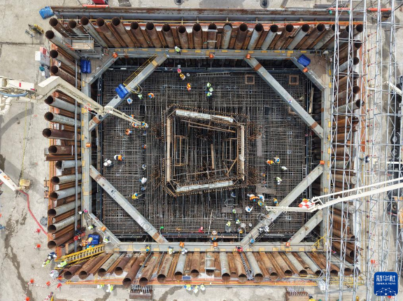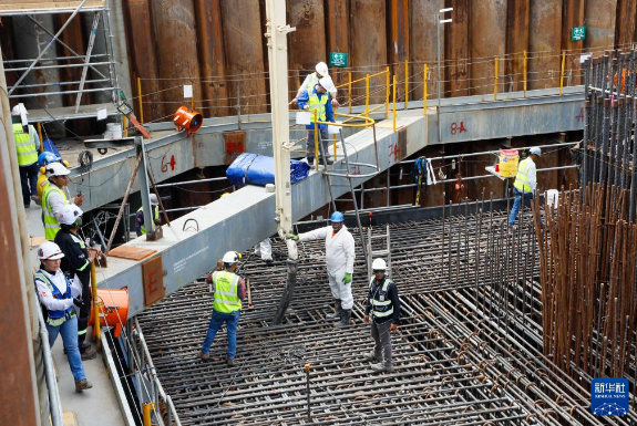 这是11月1日在巴拿马首都巴拿马城拍摄的巴拿马运河第四大桥东主塔承台混凝土浇筑现场(无人机照片)。新华社发(巴拿马运河第四大桥项目方供图)