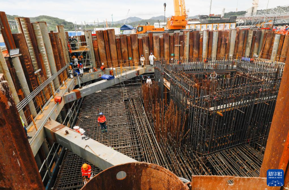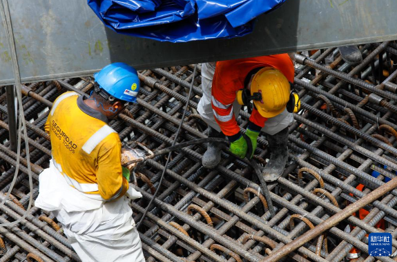 11月1日,工人在位于巴拿马首都巴拿马城的巴拿马运河第四大桥东主塔承台施工区域内作业。新华社发(丹尼尔·冈萨雷斯摄)