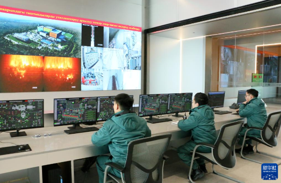 12月27日,在吉尔吉斯斯坦比什凯克,工作人员在比什凯克市垃圾焚烧发电项目中央控制室监测项目运行情况。新华社记者 江宥林 摄