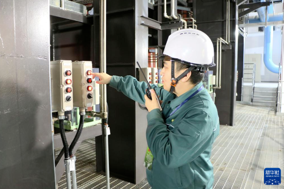 12月27日,在吉尔吉斯斯坦比什凯克,工作人员在比什凯克市垃圾焚烧发电项目锅炉车间巡检。新华社记者 江宥林 摄