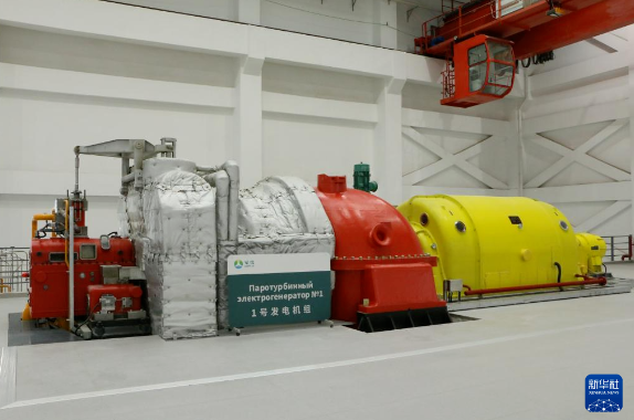 这是12月27日在吉尔吉斯斯坦拍摄的比什凯克市垃圾焚烧发电项目汽轮机发电机组。新华社记者 江宥林 摄