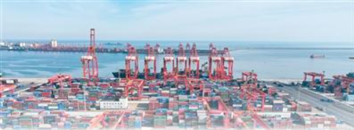 山东港口日照港集装箱码头,自动化桥吊精准作业,一派繁忙景象。宋年升摄