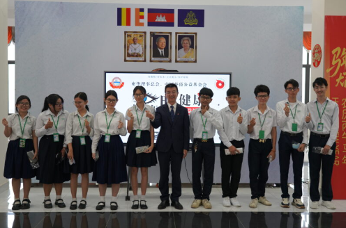 中国驻柬埔寨大使馆武晓峰参赞、刘召兴领事,柬华理事总会轮值会长韩强畴公爵、副会长蔡伟华勋爵、常务理事符鸿英先生、黄美芬女士、秘书长钟耀辉,以及金边市各华校代表共同出席仪式。