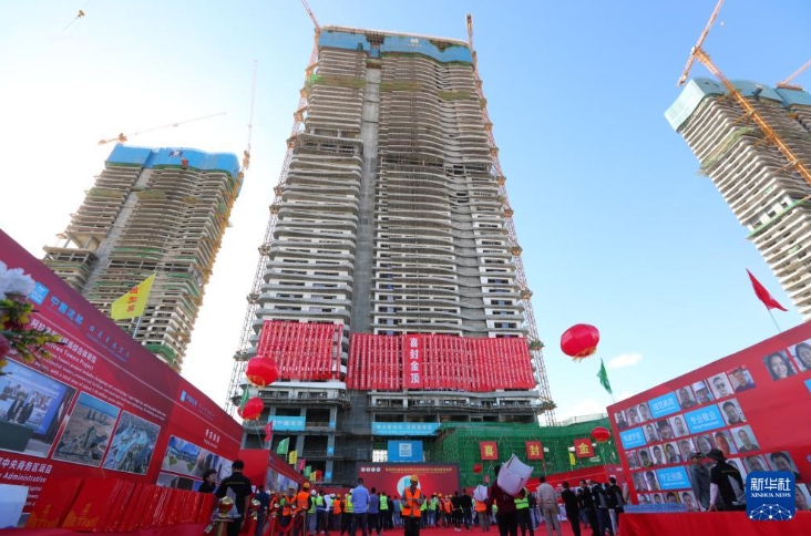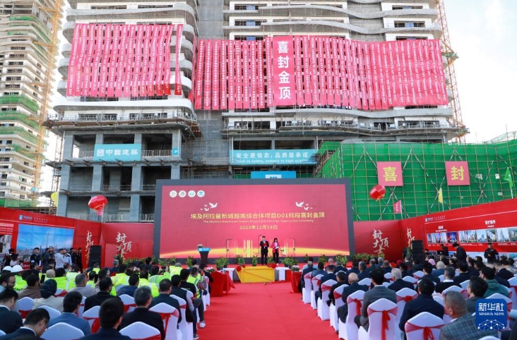 这是12月18日拍摄的埃及阿拉曼新城超高综合体项目D01住宅楼封顶仪式现场。新华社记者 隋先凯 摄