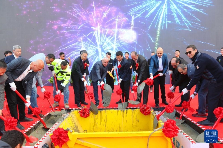 12月18日,嘉宾出席埃及阿拉曼新城超高综合体项目D01住宅楼封顶仪式。新华社记者 隋先凯 摄