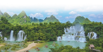 两岸瀑布挂青山,气势磅礴,闻声数里。去年9月15日,作为中国首个跨境旅游合作区,中越德天(板约)瀑布跨境旅游合作区(以下简称“合作区”)启动为期一年的试运营。该项目由中国广西壮族自治区与越南高平省共同建设和实施。试运营期间,两国游客可持合法有效证件,经边检部门检查后,到合作区对方一侧参观游览。越南青年阮明和与友人到高平省旅游,看到跨境旅游项目手续办理流程十分方便就报名参团。“在德天瀑布,我们参观了壮锦大道、观瀑平台、三级瀑布等景点。中国景区投资力度大,各项基础设施建设完善,服务质量也很高。”阮明和说。