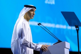 2月26日,在阿联酋首都阿布扎比,阿联酋外贸国务部长、世贸组织第13届部长级会议主席萨尼·泽尤迪在世界贸易组织第13届部长级会议开幕式上致辞。新华社发(世界贸易组织供图)