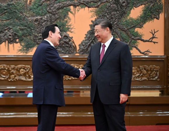 4月10日下午,中共中央总书记习近平在北京会见马英九一行。新华社记者 谢环驰 摄