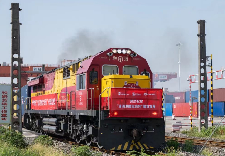 2024年8月20日,首趟“渝深港图定班列”在重庆团结村站顺利发车。新华社记者张子彧摄