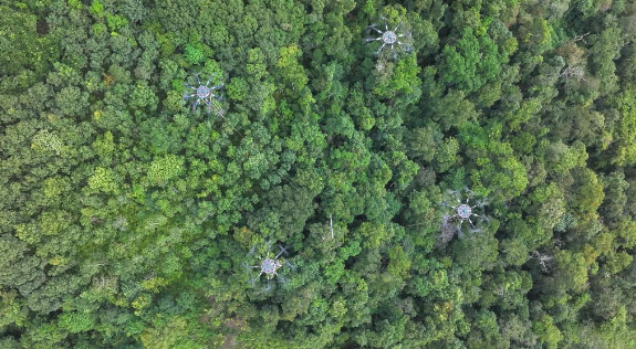 针对大重量运输难题,团队研发出“四机联吊”技术,经过数百次试验调试,攻克多机协同控制、载荷均衡分配等关键技术。目前,“四机联吊”单次运输重量已突破500公斤,创造了单日飞跃高差220米、运输直线距离900米的雨林运输纪录。