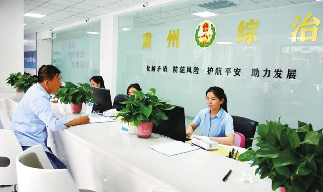 肃州区综治中心工作人员在接待来访群众。(魏世东)