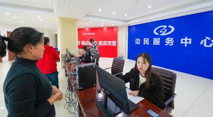 10 октября 2024 года, в зоне взаимной торговли между жителями приграничных районов Китая и России в Маньчжоули местная жительница занимается формальностями, связанными с подачей деклараций о сделках. /Фото: Синьхуа/