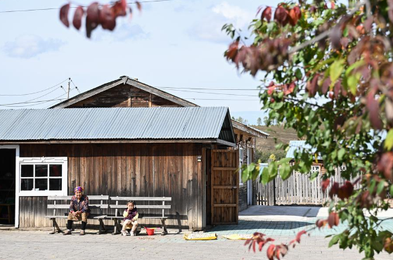 18 сентября 2025 года, местные жители отдыхают у избы "Мукэлэн" в деревне Эньхэ Эньхэ-Русской национальной волости города Эргуна /Аргунь/ автономного района Внутренняя Монголия /Северный Китай/. /Фото: Синьхуа/
