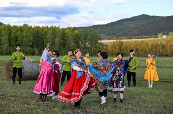 15 сентября 2025 года, люди на праздничных мероприятиях, посвященных сбору богатого урожая, в Эньхэ-Русской национальной волости города Эргуна /Аргунь/ автономного района Внутренняя Монголия /Северный Китай/. /Фото: Синьхуа/