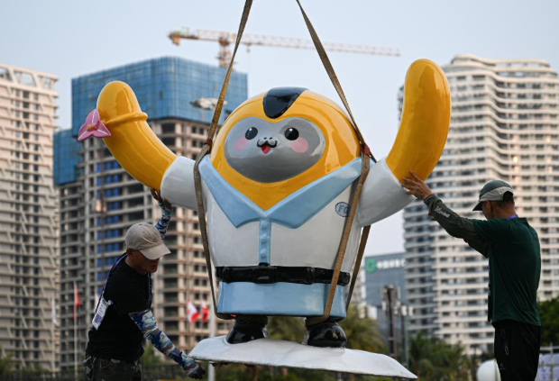 10 апреля, Хайкоу, Китай. Установка талисмана 6-го CICPE рядом с основным местом проведения выставки. /Фото: Синьхуа/