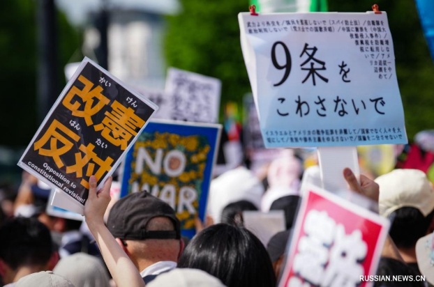 Десятки тысяч японцев собрались в воскресенье у здания парламента в Токио, чтобы выразить свой протест против попыток правительства премьер-министра Санаэ Такаити протолкнуть пересмотр пацифистской Конституции Японии и чтобы призвать к защите ее 9-й статьи.