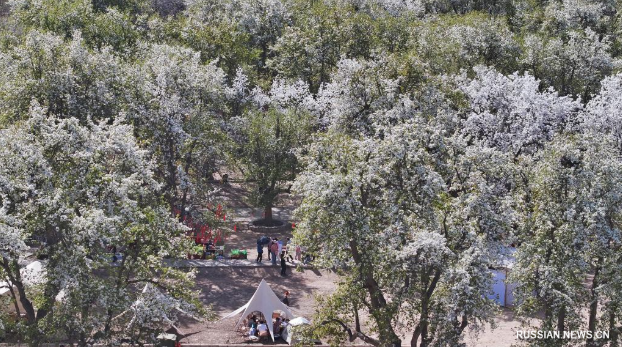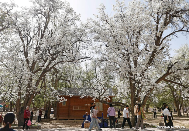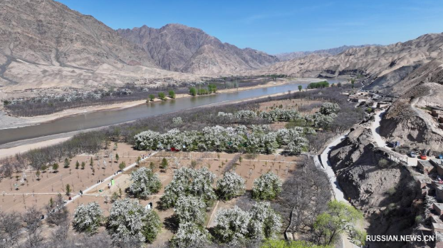 Иньчуань, 8 апреля /Синьхуа/ -- В окрестностях города Чжунвэй в Нинся-Хуэйском автономном районе /Северо-Западный Китай/ сотни вековых грушевых деревьев, стоящих в полном цвету, стали прекрасным украшением берегов реки Хуанхэ в начале апреля и одним из факторов привлекательности этого места для туристов.